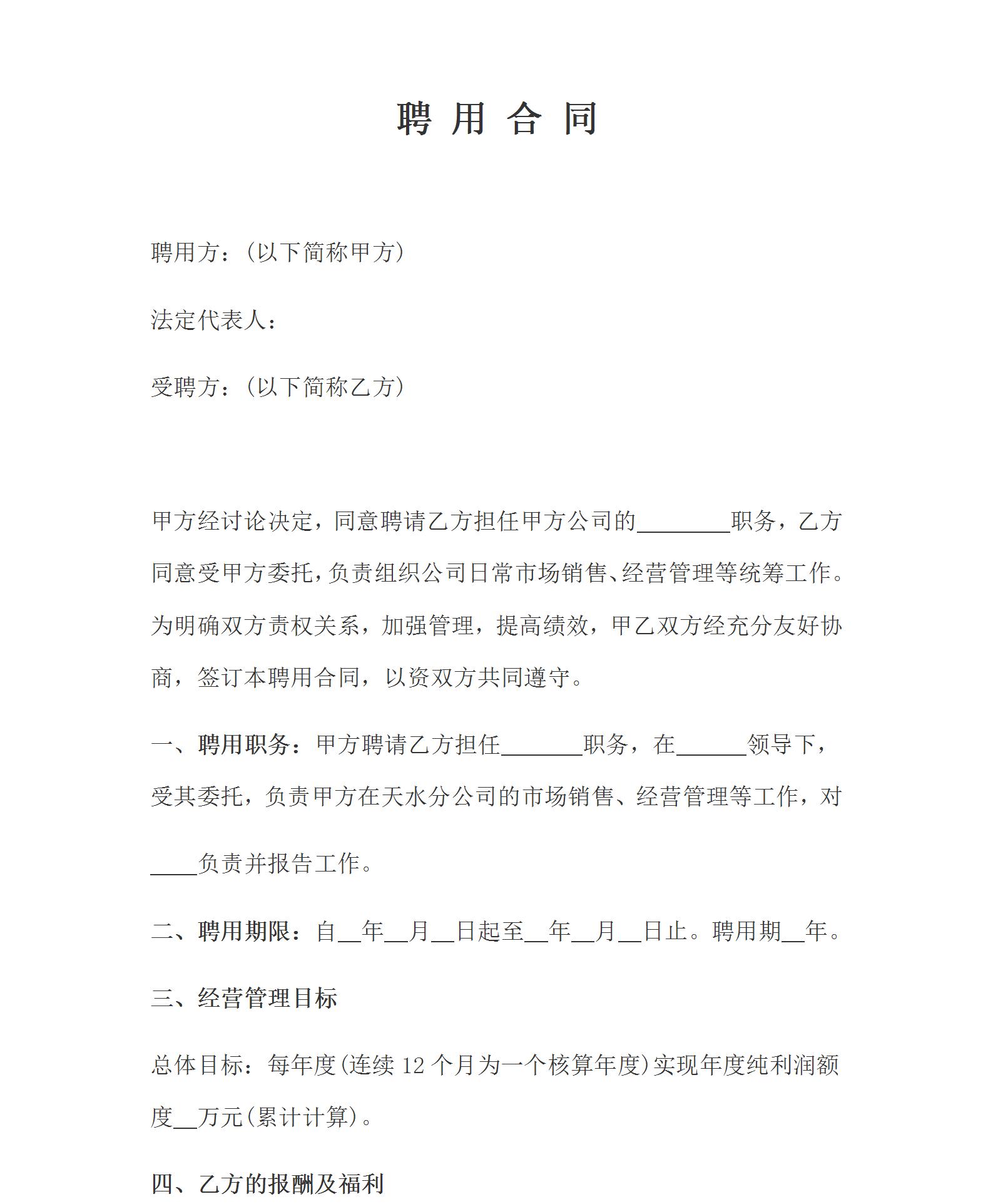 甲方经讨论决定,同意聘请乙方担任甲方公司的 职务,乙方同意受甲方委托,负责组织公司日常市场销售、经营管理等统筹工作。